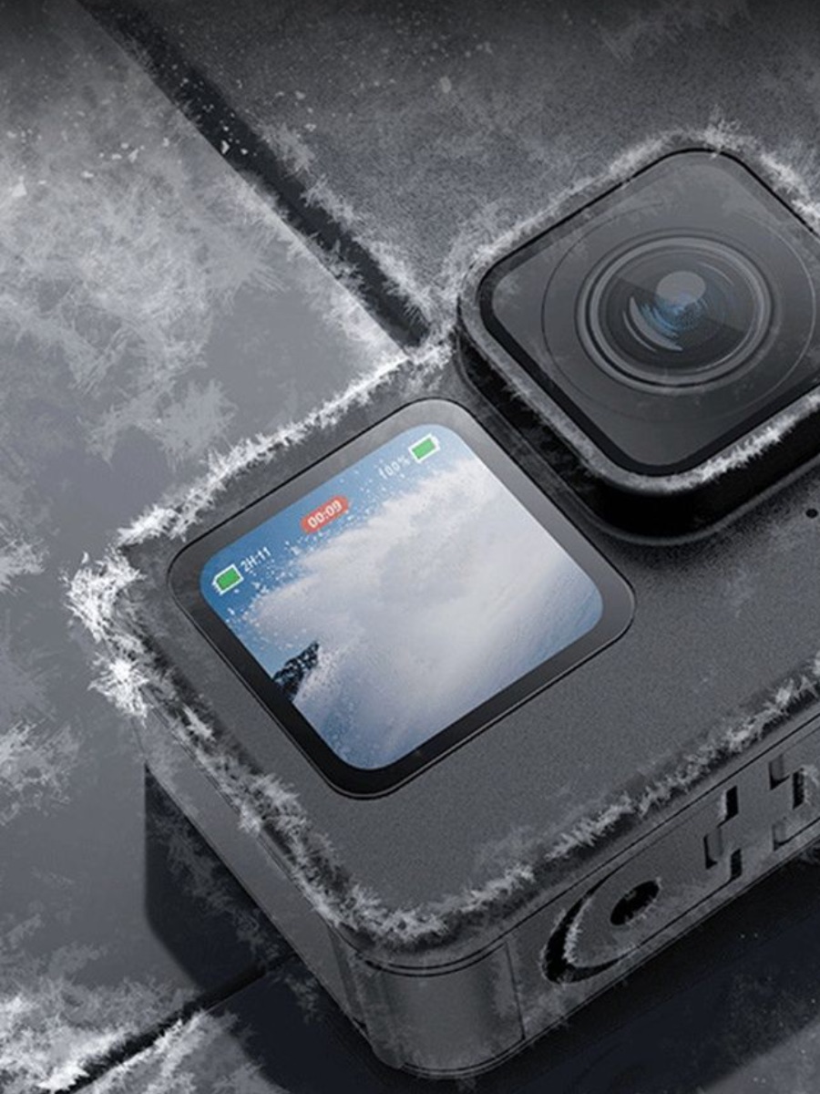 Морозостойкость: литий-полимерная технология аккумулятора гарантирует его работу даже при температуре до -20°С. Заптсь 4K/120 кадра 43 мин, 4K/60 кадра 58 мин, 1080P/30 кадра 82 мин.