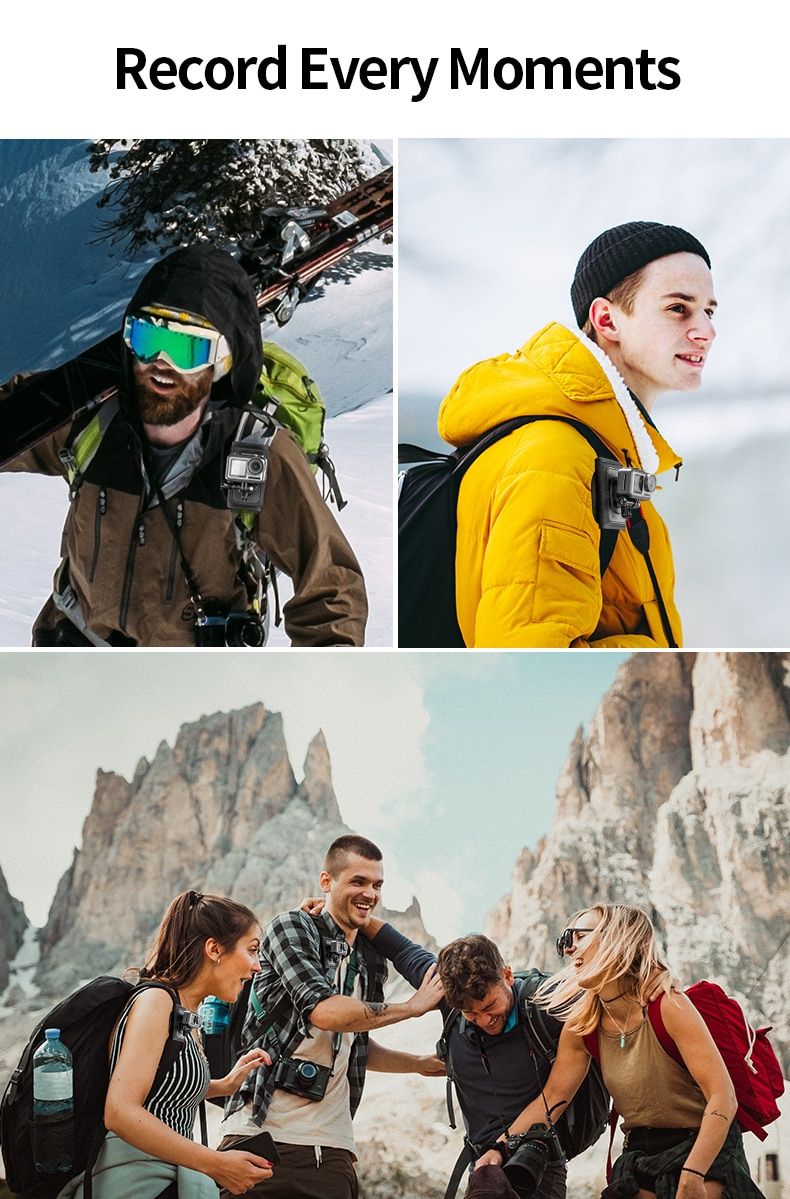 Крепление Telesin на лямку рюкзака отлично подойдет при долгих пеших переходах камера под рукой и не мешает и не сковывает движения. Главное преимущество это универсальность, при необходимости высота крепления может регулироваться и вы можете менять ракурс съемки, например перенести крепление выше по лямке рюкзака и установить его на плече и снимать с плеча картинку в полный рост.