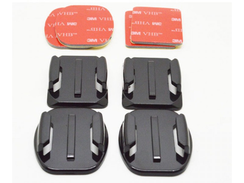 Набор плоских и изогнутыхх площадок под защелку с наклейками 3M позволит зафиксировать экшн-камеру на любой гладкой поверхности, будь то каска, сноуборд, труба большого диаметра, крыло радиоуправляемого самолета и т.д.