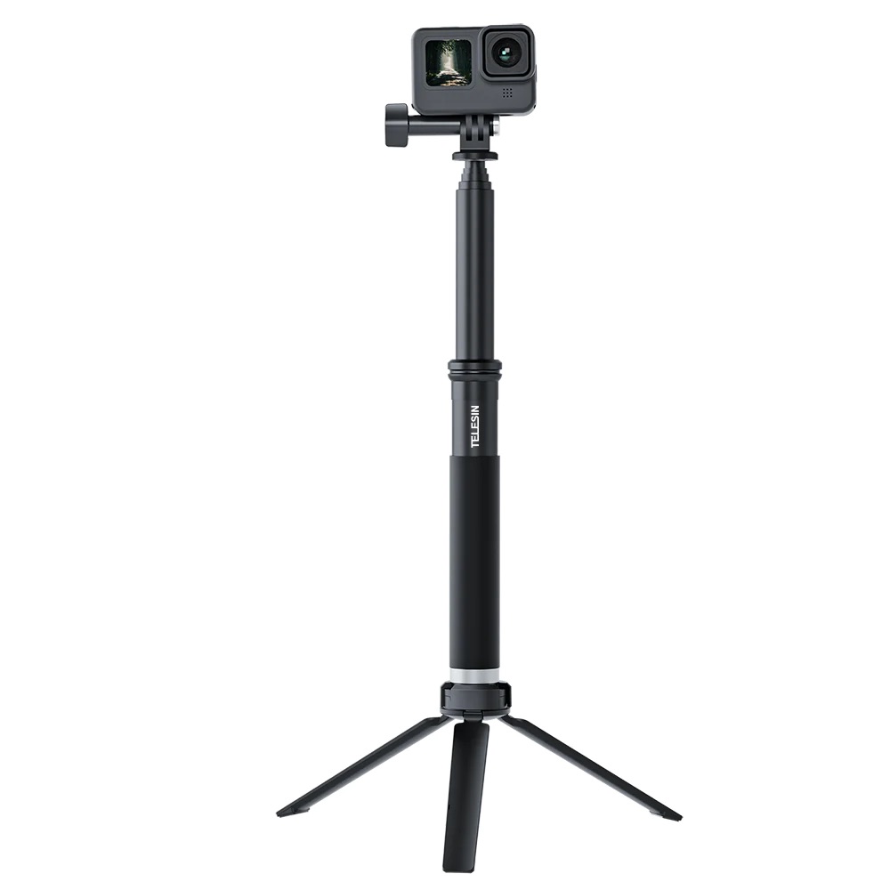 Его уникальность в том, что он телескопический и компактный! При максимальной длине в 90 см. он весит всего 240 грамм для регулировки высоты у него спрятано 5 секций и каждая имеет отдельный фиксатор, что позволяет регулировать высоту по необходимости. В сложенном виде монопод TELESIN всего 20 см и это его фишка, из такого малыша он вырастает практически до метра (если считать треноги)