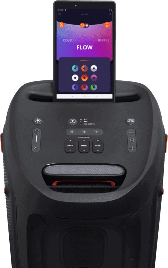Управляйте колонкой из любого места с помощью приложения PartyBox. Меняйте треки, световые эффекты и другие параметры одним касанием.