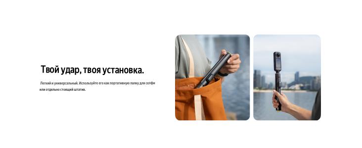 Этот легкий и компактный гаджет легко превращается в селфи-палку или устанавливается на встроенный штатив. Ножки штатива автоматически раскладываются при касании земли, что делает использование максимально удобным.