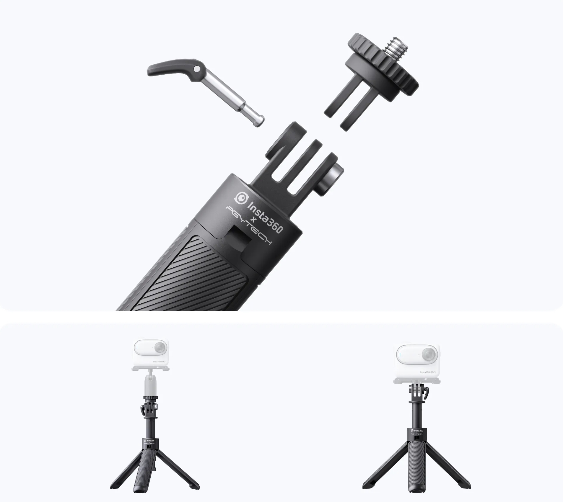 В максимальном положении длина селфи-палки составляет 40см, также предусмотрена фиксация в нескольких промежуточных положениях. Конструкция крепления позволяет устанавливать камеры на резьюбу 1/4″ или на стандартные пластины.