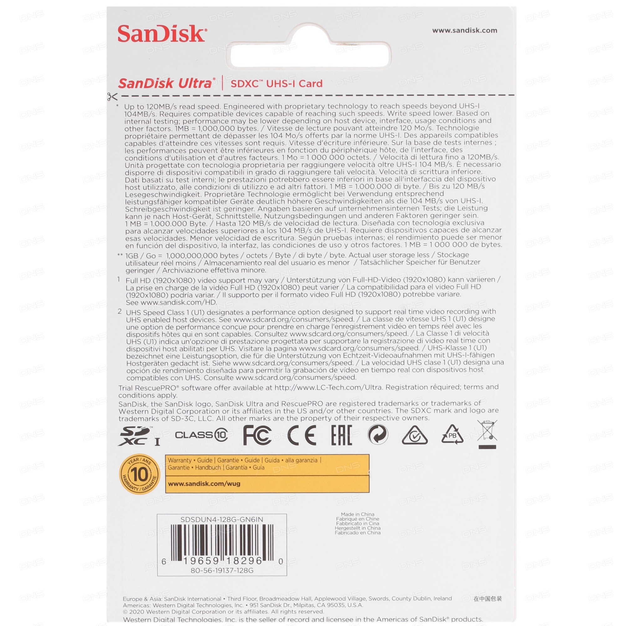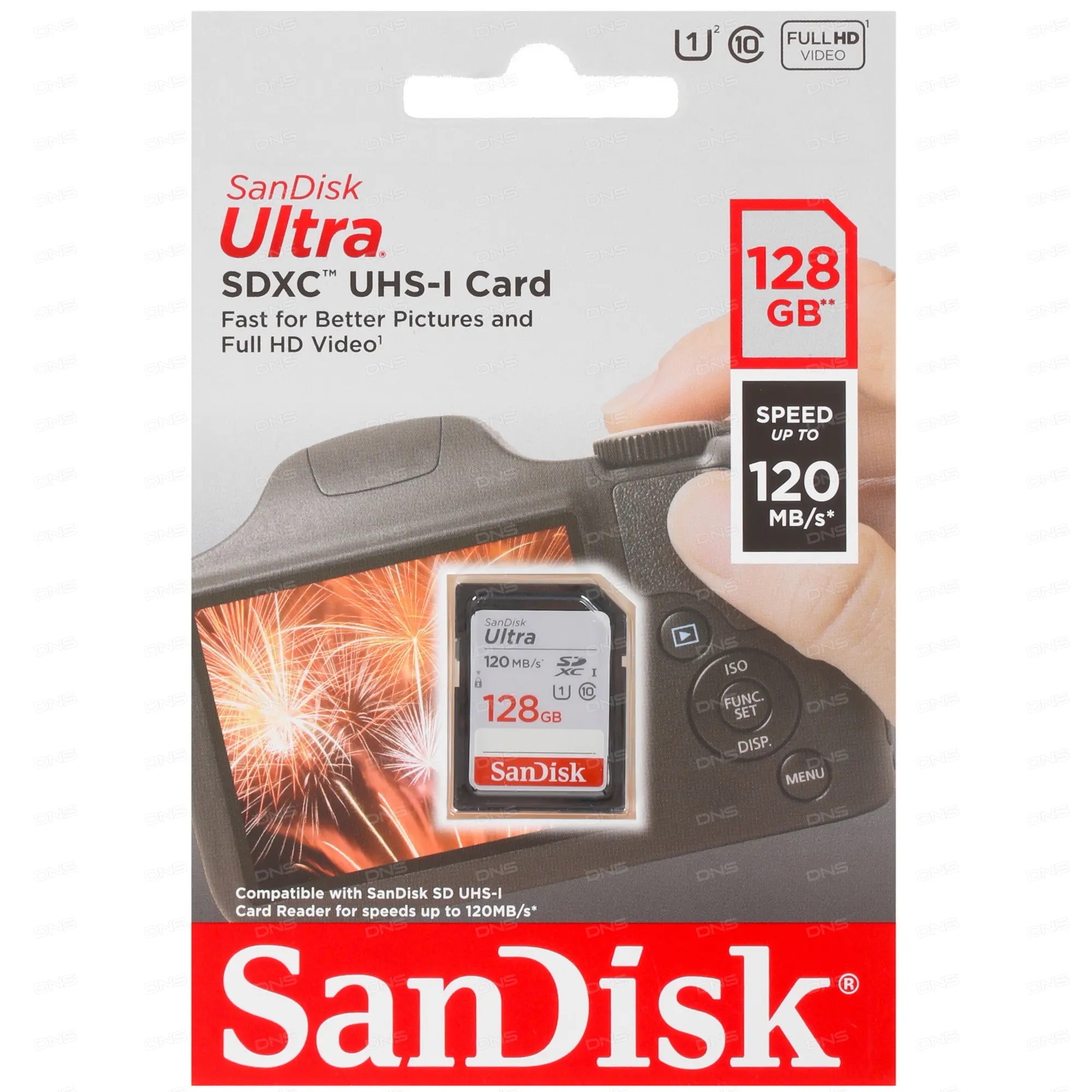 Карта памяти SanDisk Ultra SDXC 128 ГБ [SDSDUN4-128G-GN6IN] соответствует классам Class 10 и UHS-I (U1). Скорость чтения ограничена 120 МБ/с Карты памяти SanDisk имеют высокую степень защиты от внешних воздействий.