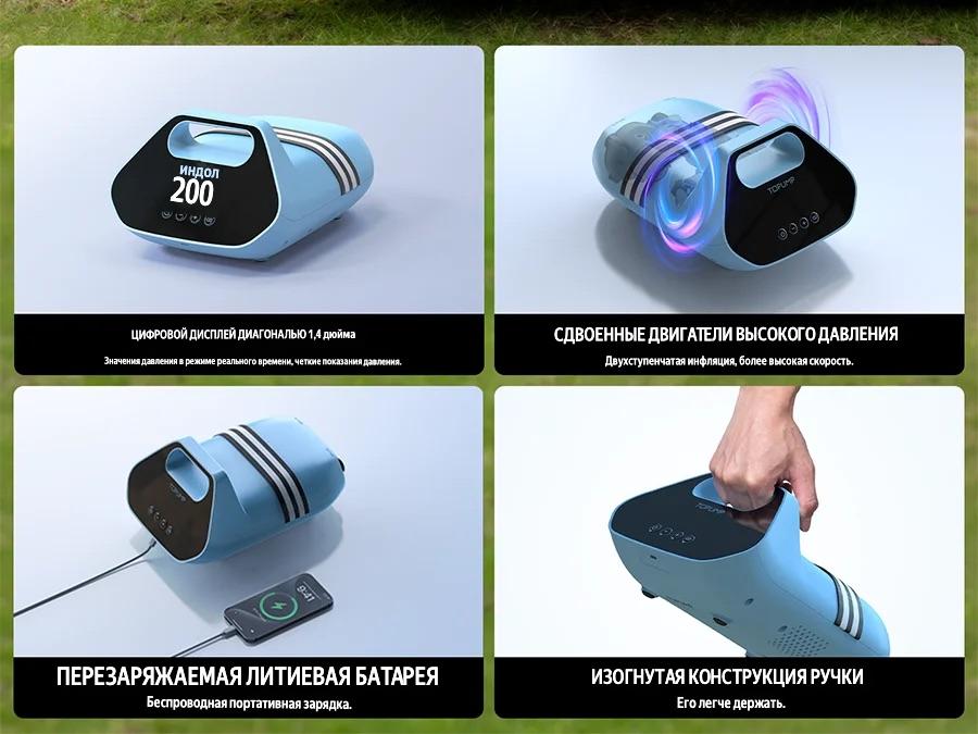Этот аккумуляторный насос высокого давления предназначен для накачивания сапбордов, лодок, каяков, палаток и других надувных изделий. Он оснащён двухступенчатой системой накачивания, которая позволяет быстро и эффективно достичь нужного давления.